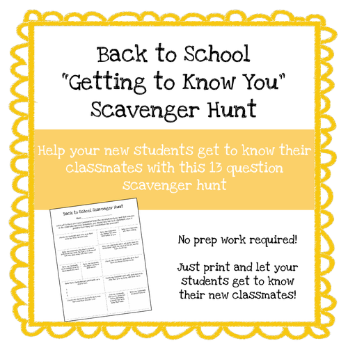 I have done this with second and third graders but it is easily adaptable for any grade. Each task led them to a different resource or routine in my classroom. This scavenger hunt icebreaker activity creates bonds among students and between the students and teacher.